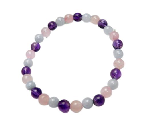 【6mm_Simple_Designブレスレット】 アクアマリン・アメジスト・ローズクォーツ 6mm ブレスレット