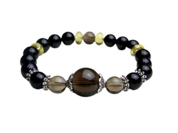 パワーストーン デザインブレスレット 存在感の溢れる、男性のための装いに スモーキークォーツ オニキス シトリン 天然石 パワーストーン