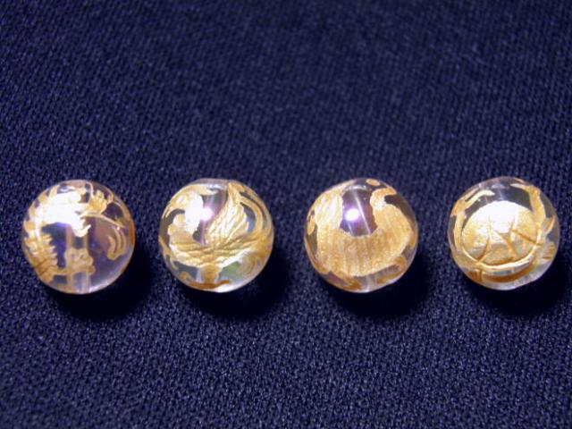 四神獣4点セット オーロラクォーツ金彫り 彫刻ビーズ 12mm玉 青龍・朱雀・白虎・玄武 天然石 パワーストーン