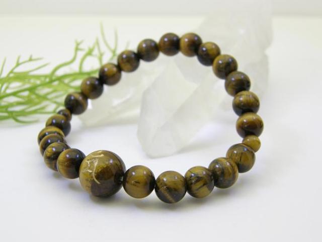 梵字 タイガーアイ ブレスレット うさぎ年生まれ。(マン 文珠菩薩)梵字は、日本ではお経などに使われ「神様の文字」と呼ばれています。世界最古の文字であるフェニキア文字がインドにもたらされたのが始まりと言われています。当時、インドで書かれたスートラ(経典)が中国を経て日本に渡り、アレンジされたものが現在の梵字です。一文字で仏様を示しています。文珠菩薩は、智慧を象徴します。素 材:タイガーアイ。サイズ:最大手首対応 約19cm 12mm玉×1ヶ その他8mm玉使用