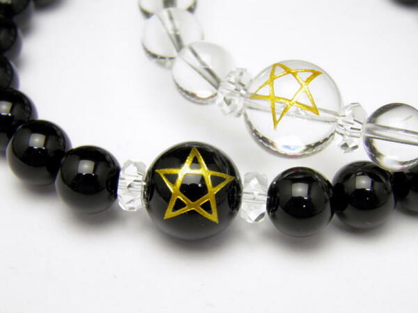 選べる2種類 五芒星 水晶 オニキス 10mm玉 ブレスレット 天然石 パワーストーン
