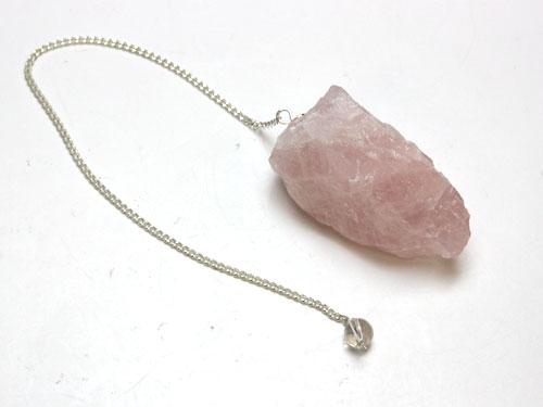 ローズクオーツのラフカットのペンデュラムです。整っていない、より原石に近い形がパワーを感じさせてくれそうです。