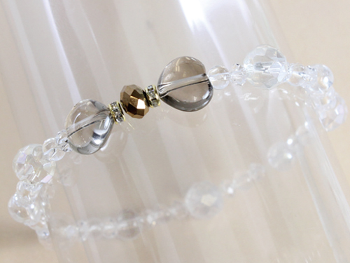 素 材&サイズ:スモーキークォーツハート:10mm、オーロラクォーツ:8mm、6mm、水晶:4mm、内径:約15cm