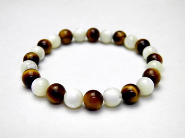 【8mm_Simple_Combiブレスレット】 マザーオブパール&タイガーアイ 風水 パワーストーン