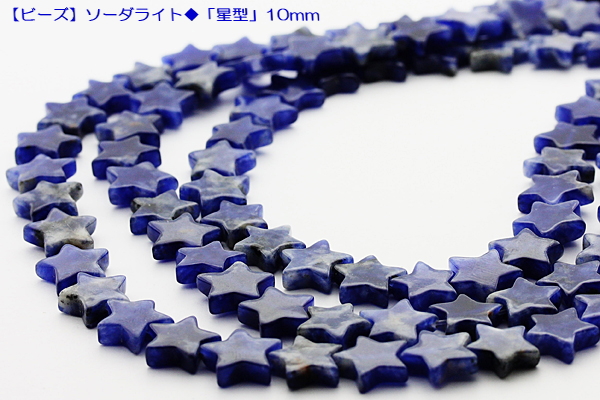 【ビーズ】 ソーダライト 「星型」10mm 一連 (シリコンゴム1m付き♪) 天然石 パワーストーン