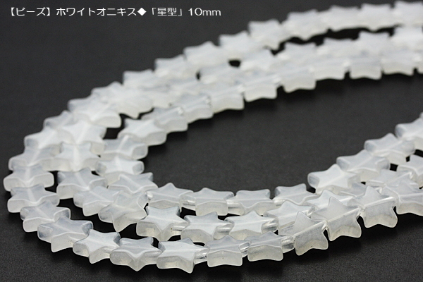 【ビーズ】 ホワイトオニキス 「星型」10mm 一連 (シリコンゴム1m付き♪) 風水 パワーストーン