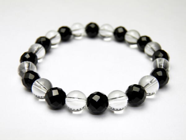 【8mm_Simple_Combiブレスレット】 オニキス 64面カット 水晶 8mm ブレスレット