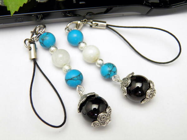 【ペアストラップ】遠距離恋愛のお守り ガーネット・ターコイズ・ムーンストーン 携帯ストラップ vol.4 メンズ・レディース 天然石 パワーストーン