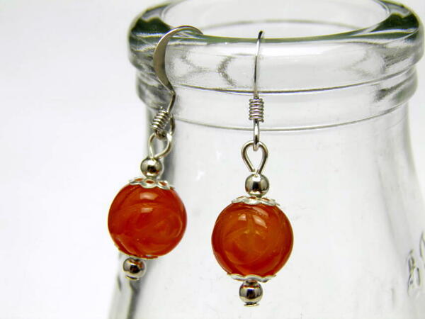 丸型 薔薇 10mm カーネリアンのピアス レディース 天然石のピアス ギフトにも最適 厄除け/お守り