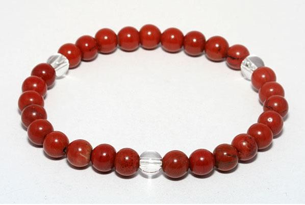 サイズ:内径/17cm、レッドジャスパー6mm×27pcs、水晶6mm×3pcs