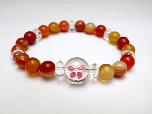 お花見ブレスレット 桜 さくら サードオニキス 天然石 風水 パワーストーン