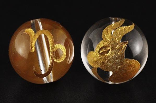 12星座 山羊座(やぎ座) 水晶金彫り 12mm玉ビーズ 【穴あり一粒売りビーズ】
