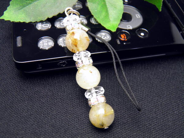 【ストラップ】 ストレートタイプ 3ポイント 水晶・ルチルクォーツ 金運 携帯ストラップ 天然石 パワーストーン