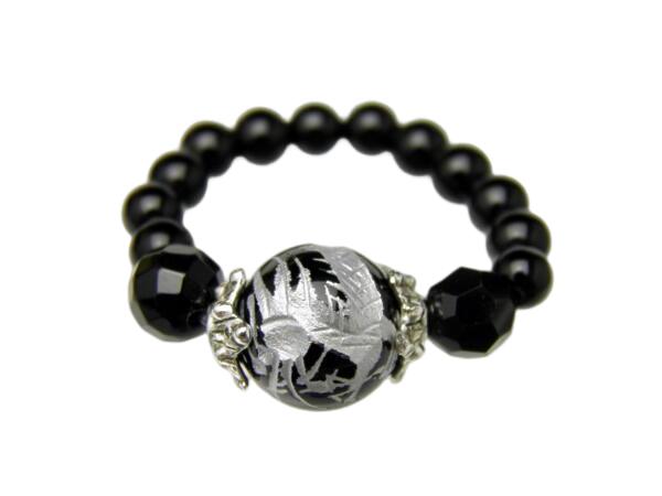 | サイズ&素 材:龍彫りオニキス/10mm、オニキス64面カット/6mm、オニキス/4mm、ロジウムロンデル/8×3mm サイズ:約11号〜ゴム(使用なので伸びます) |
