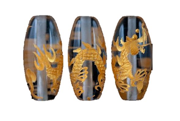 【彫刻ビーズ】水晶 (金彫り) 五爪龍 「太鼓型」 2cm 【彫刻 一粒売りビーズ】