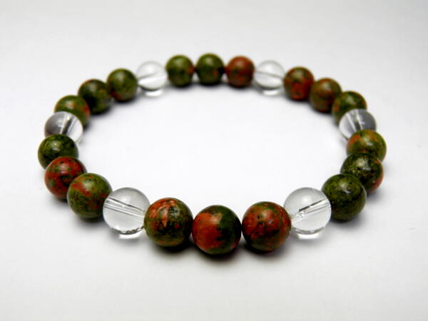 【8mm_Simple_6´sブレスレット】 8mm&8mmシンプルブレスレット ユナカイト&水晶 天然石 パワーストーン