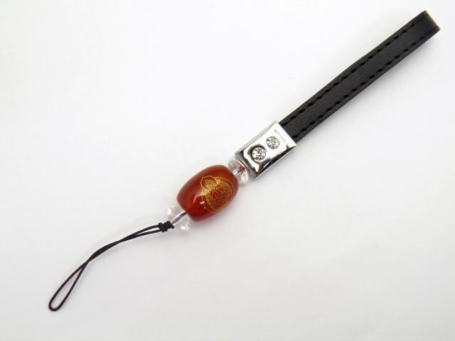 レッドメノウ 八大観音 千手観音「太鼓型 13x18mm (金)携帯ストラップ 合皮茶ひも 天然石 パワーストーン