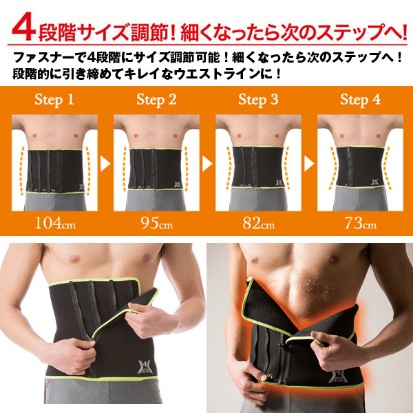 W[ウエスト]115cmまで増幅!4段階で緩みなく、ガッツリ発汗&引き締め!!