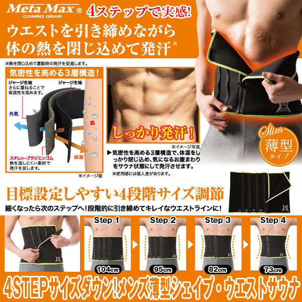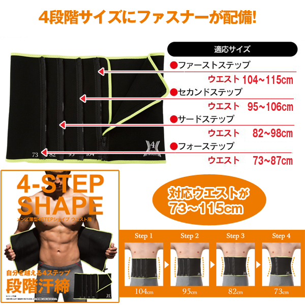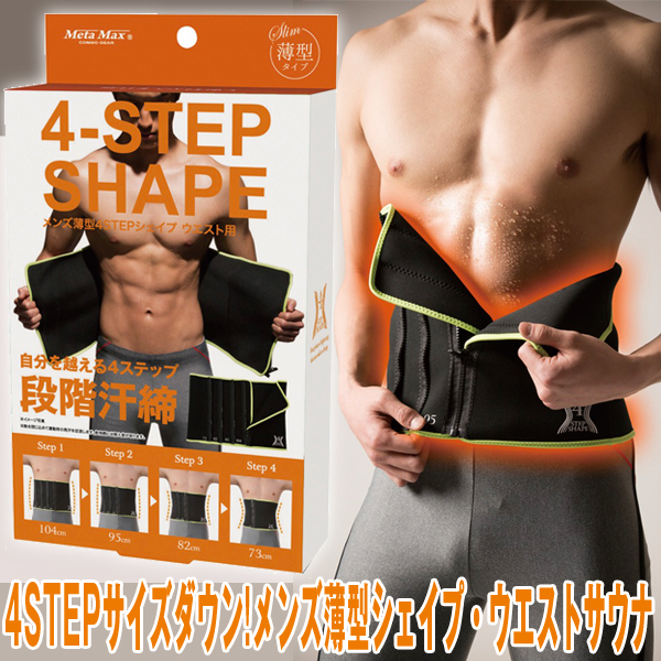 メンズ 4ステップ シェイプ ウエスト用 ベルト スリム(4STEP サイズダウン 薄型シェイプ ウエストサウナ)発汗 お腹 引き締め ダイエット シックスパック