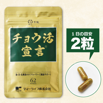 チョウ活宣言 62粒入 (送料無料 腸内フローラ サプリメント 繊維 麹 黒麹 緑茶 乳酸菌)《ティーライフ》