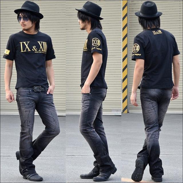 【閉店セール】フロントバックロゴデザインプリント 半袖Tシャツ オラオラ 70727 メンズファッション キレイメ シンプル メンズカジュアル Vネック メンズ ストレッチ アメカジ クールカジュアル メール便300円対応商品 G.H.R NINE&THIRTEEN