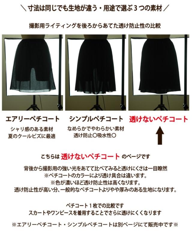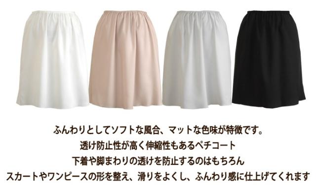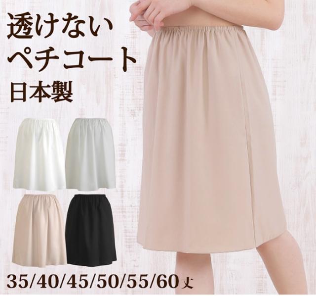 透けない ペチコート 高い透け防止性 日本製 35丈/40丈/45丈/50丈/55丈/60丈 ストレッチサテン地で動きやすさもばっちり