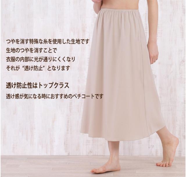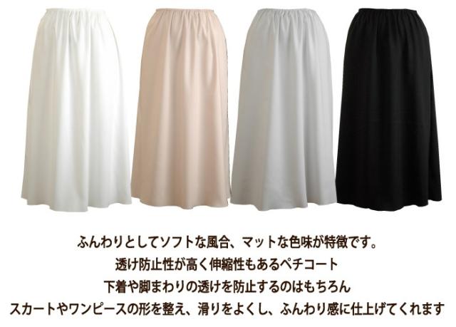 透けない ロングペチコート 65丈/70丈/75丈/80丈/85丈 トップクラスの透け防止性 ストレッチサテン地で動きやすさもばっちり