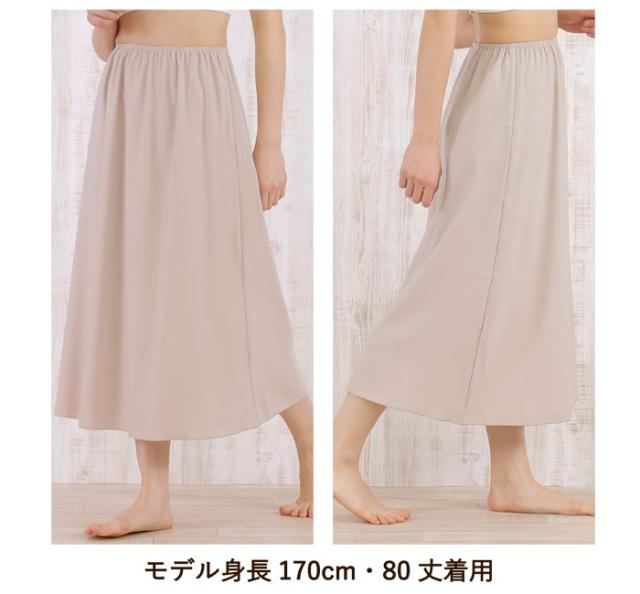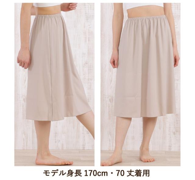 - ピンクベージュ70cm購入しました。身長150cmですが普段足首くらいのロングスカートを履くので、そこから見えないくらいのちょうどいい長さでした。しかも本当に透けないので安心して白のスカートが履けまし...