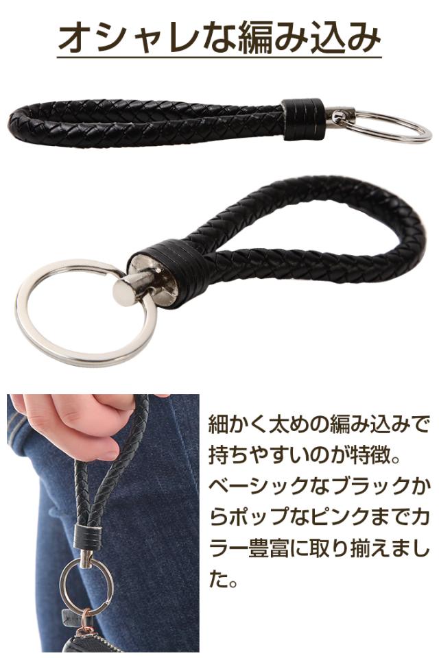編込みフェイクレザーキーホルダー | 男性にも女性にも人気の編み込みキーホルダー 編込み 編み込み レザー フェイクレザー キーホルダー ブラック ホワイト ピンク キーチェーン 鍵 メンズ 送料無料