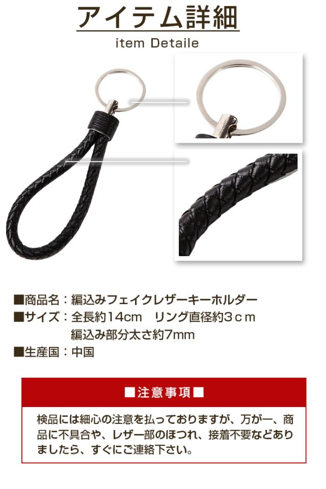 ■商品説明:存在感のある編込みフェイクレザーがかっこいい、キーホルダーです。家の鍵や、車の鍵に使用してもかっこいいです。