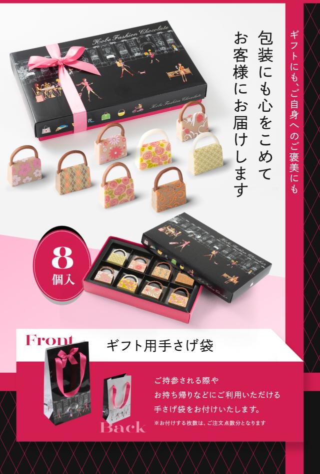 神戸ファッションチョコレート 8個入 ■外装サイズ/13cm×24cm×3cm ■保存方法/直射日光、高温多湿な場所を避け冷暗所で保存