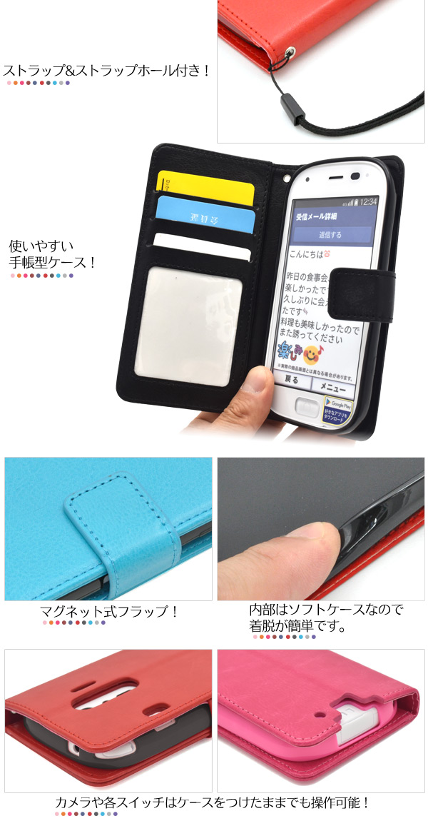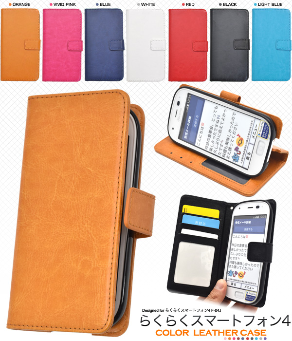 らくらくスマートフォン4 F-04J/me F-03K用 カラーレザー手帳型ケース