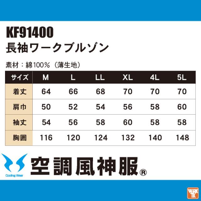 KU91400 すぐに使えるフルセット!綿100%の空調作業服。シンプルで使いやすいデザイン。