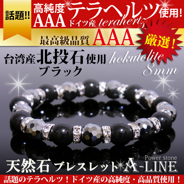 送料無料 パワーストーン ブレスレット 高純度AAAテラヘルツ128面カット&BLACK北投石8mm PW-3101