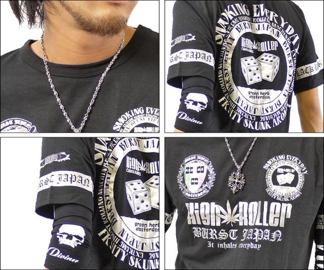 【閉店セール】ダイス&マリファナデザイン 半袖Tシャツ オラオラ 70563 メンズファッション キレイメ シンプル メンズカジュアル Vネック メンズ ストレッチ アメカジ クールカジュアル メンズファッション キレイメ メール便300円対応商品 BURST JAPAN