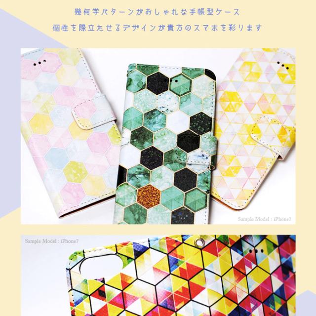 Android One 507SH 手帳 ケース ステンドグラス風 幾何学 六角形 手帳型ケース 手帳ケース 手帳カバー 手帳型スマホケース