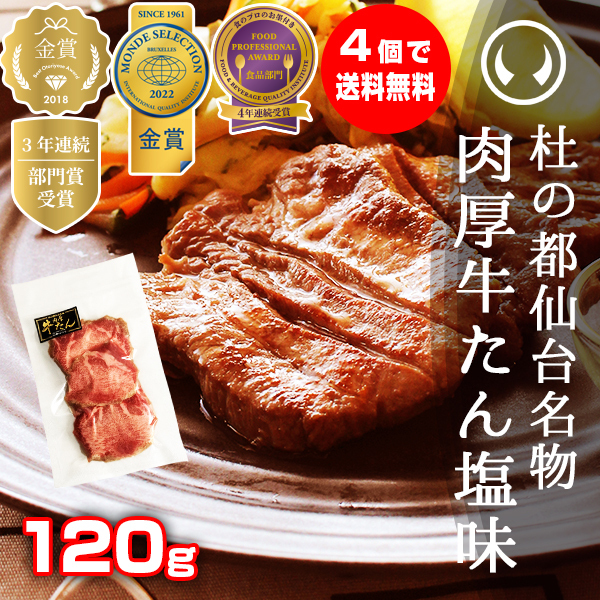 【4個以上で送料無料/簡易包装】仙台名物 肉厚牛たん 120gパック【モンドセレクション2024金賞受賞】