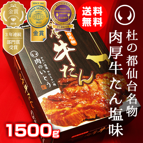 牛タン 厚切り 肉 牛肉 仙台 お土産 送料無料 杜の都仙台名物 肉厚牛たん 1500g(7〜10人分)のしOK【モンドセレクション 金賞受賞 牛たん 牛タン 厚切り ギフト お歳暮 御歳暮 お中元 御中元 父の日 母の日 敬老の日 お祝い 御祝 内祝 お取り寄せ 仙台 名物 宮城】