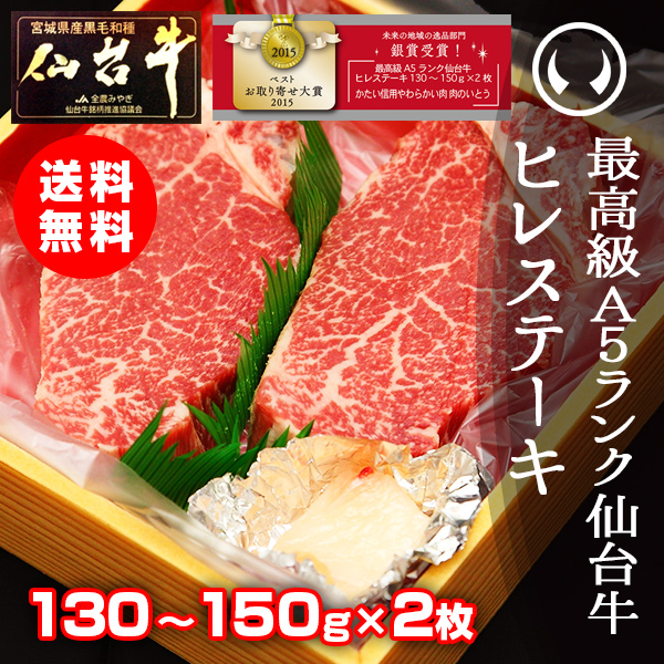 ギフト 牛肉 送料無料 最高級A5ランク仙台牛 ヒレステーキ 130〜150g×2枚 のしOK ギフト お歳暮 お中元