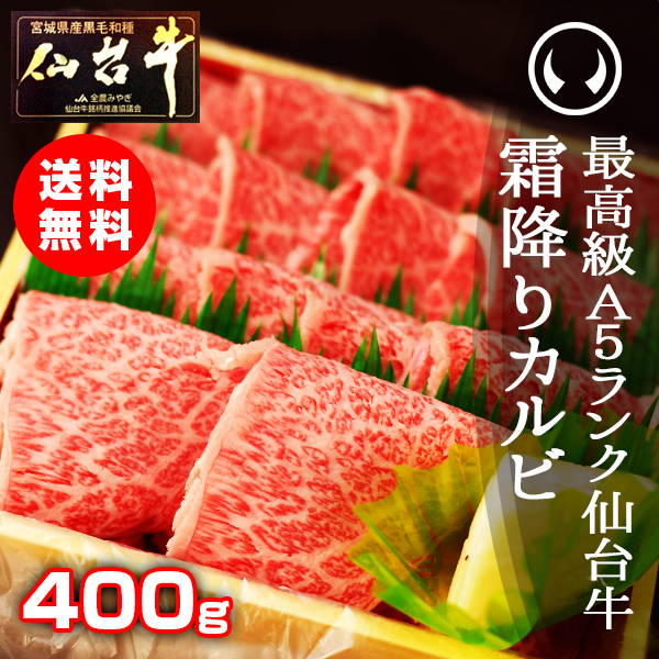 ギフト 肉 焼肉 送料無料 最高級A5ランク仙台牛 特選霜降りカルビ 400g のしOK ギフト お歳暮 お中元