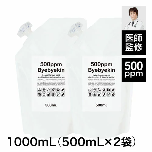 | 特徴 | 「バイバイ菌」は次亜塩素酸 (製造時500ppm強) 高濃度希釈タイプ 強力除菌・消臭水。無隔膜電解槽で電気分解して製造した電解水に炭酸をバブリングして製造した次亜塩素酸(500ppm強)です。 嘔吐物の処理は原液が有効ですが、2.5倍に希釈してキッチン回り、5倍希釈でトイレ回り、さらに10倍に希釈すると、赤ちゃん用品・介護用品の除菌消臭や、専用の超音波加湿器を使った室内除菌等さまざまな用途にご利用頂けます。 次亜塩素酸水溶液は有機物に触れるとウイルスや菌を分解し、最後は水に戻りますので自然にも優しくなっております。 ※水道水で10倍希釈の次亜塩素酸において2ml中0.0004gの塩や水道水のミネラル分が残りますので、除菌後は拭取って頂くとよいです。 ※本品は「次亜塩素酸ナトリウム」ではなく「微酸性の次亜塩素酸水溶液」です。10倍に希釈したバイバイ菌は食品添加物規格基準(微酸性次亜塩素酸水)を同等基準である事を確認しております。(食品分析センターにて確認) 未開封の場合で冷暗所(冷蔵庫保存)にて製造より約3ヵ月は500ppm以上の有効塩素濃度を保持しております。 ※夏場など保存条件によっては早く濃度が低下する場合もあります。※開封後も3か月を目安にお早めにお使い下さい。 ※製造・製品化した日時は商品に記載がされております。 |