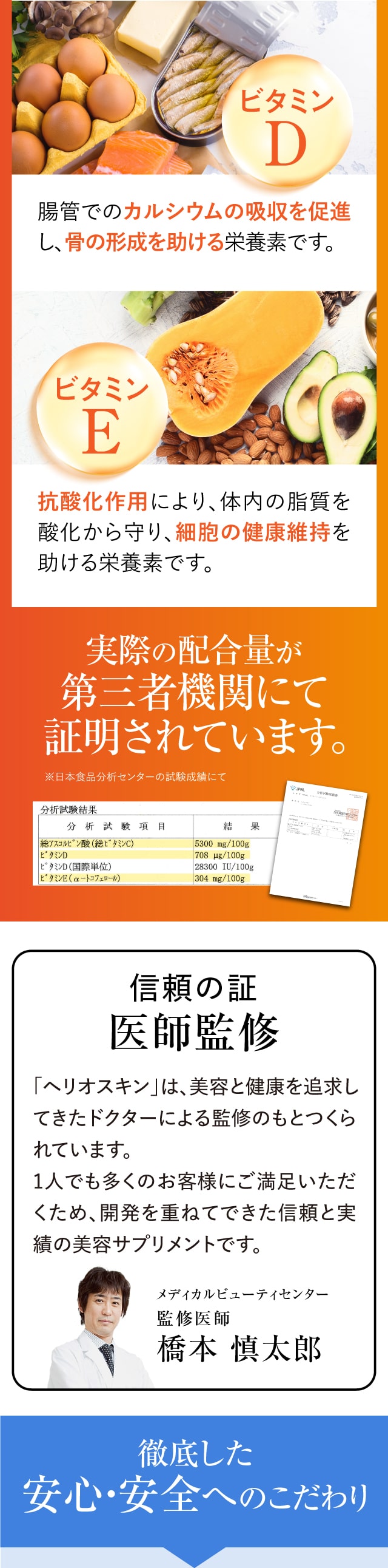| 区分 | パーフェクト デイプロテクション:化粧品 ヘリオスキン:栄養機能食品(ビタミンC・ビタミンD・ビタミンE) |