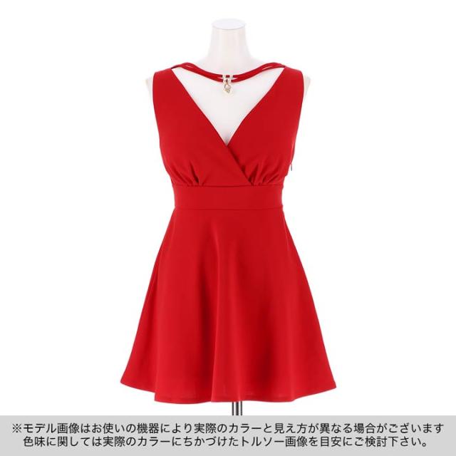 ミニドレス ミニ ドレス Aライン フレア ワンピース ノースリーブ カップ付き パット有 裏地有 白 ホワイト white 赤 レッド red 黒 black ブラック ワンカラー バッククロス ネックレスモチーフ dress 衣装 人気 ストレッチ 体型カバー キャバ キャバクラ キャバ嬢 キャバドレス dazzylounge デイジーラウンジ lounge 私服 同伴 プライベート デート 女子会 S M 2サイズ 根本弥生 ネモヤヨ de83030