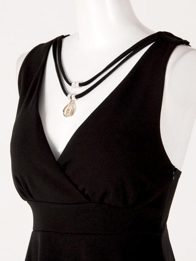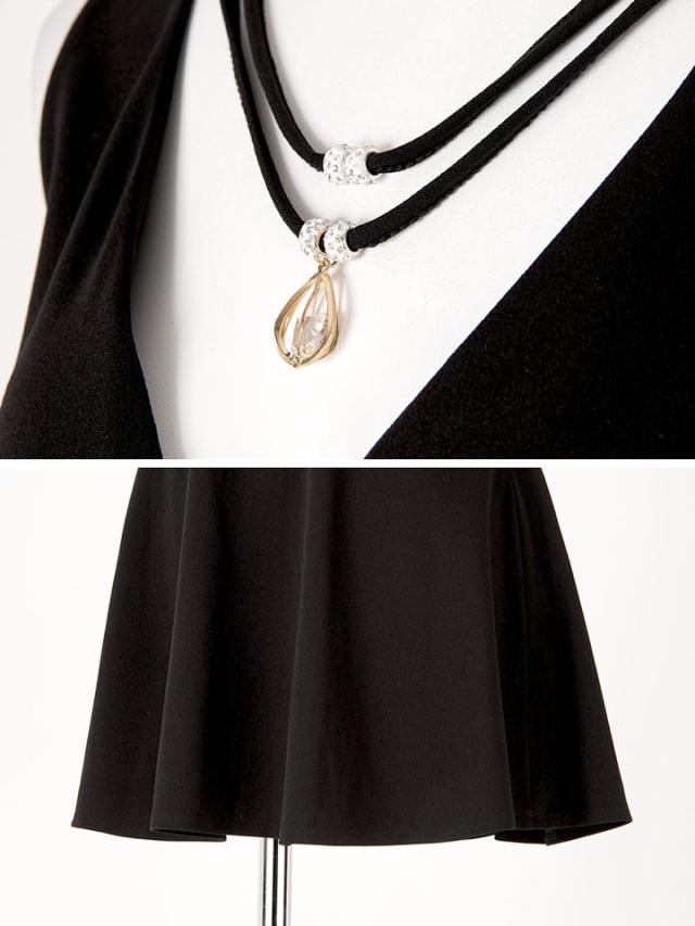 ネックレスモチーフが華やかなミニワンピース。バックスタイルも可愛くクロスになっており、お値段以上のデザイン性♪さらに、着心地の良いストレッチ生地で長時間の着用も、楽チンな1着です。