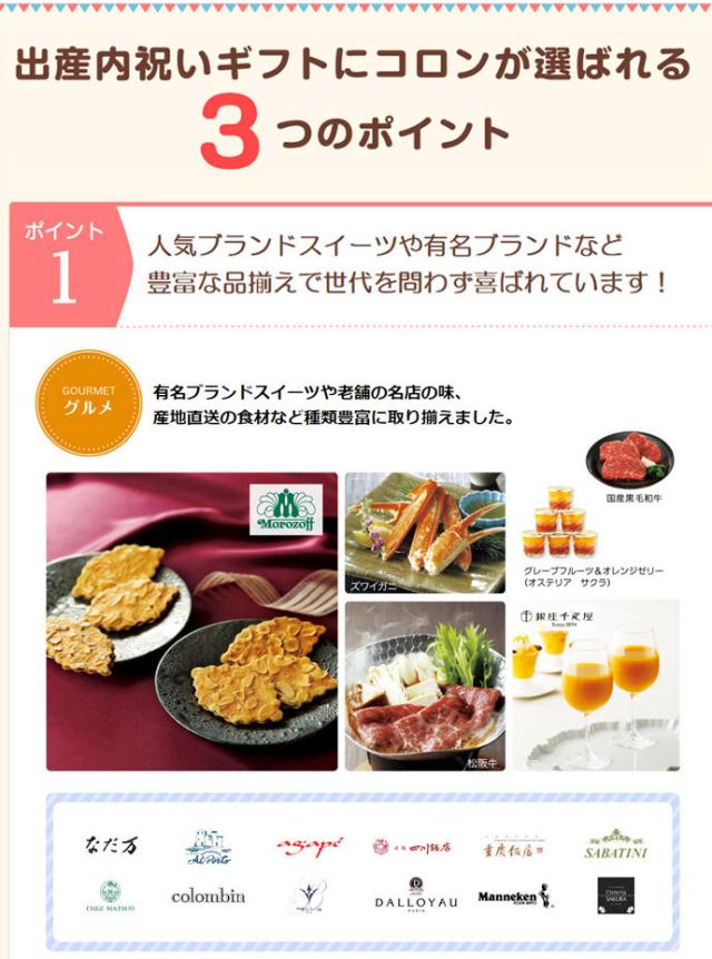 出産祝いを頂いた方へのお返しは出産内祝い専用カタログギフト「コロン」をぜひご利用ください!
