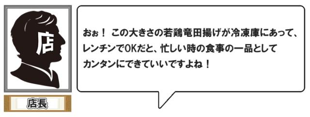 - お弁当のおかずにも良いですし、 お手軽にチキン南蛮や油淋鶏が出来ますし、 チキン竜田バーガーやサンドウィッチにもなり、 とても重宝しています!!
