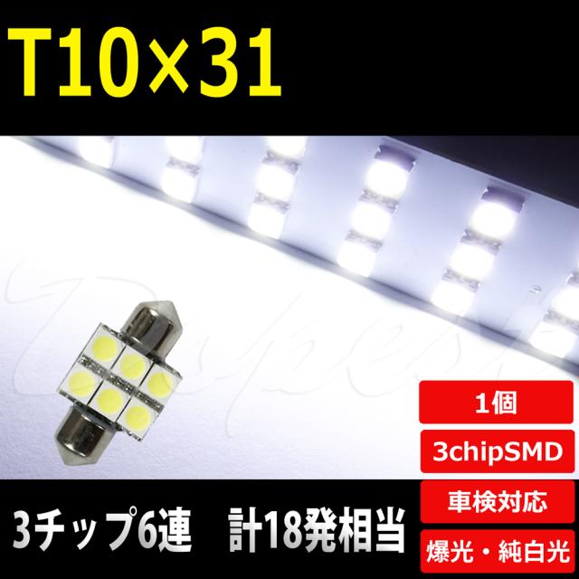 T10×31mm LED バルブ SMD6連3チップ ルームランプ ラゲッジ 汎用 ライト 球 トランク 荷室 枕型 フェストン球