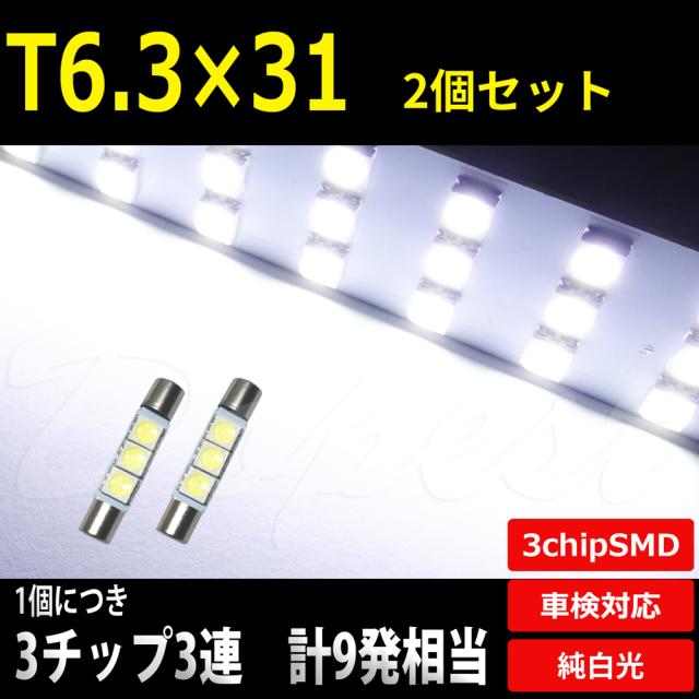 T6.3×31mm LED バルブ SMD3連3チップ バニティ バイザー 2個 汎用 ライト 球 バニティー サンシェイド
