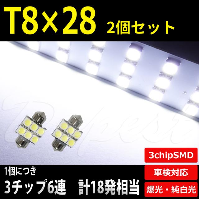 T8×28mm LED バルブ SMD6連3チップ ルームランプ ラゲッジ 2個 汎用 ライト 球 荷室 枕型 フェストン球 T10×28