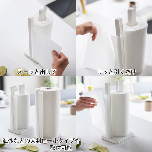 ロールペーパー 収納 片手で切れる キッチンペーパー ホルダー プレート ホワイト Plate スタンド おしゃれ 白 かわいい モダン テイスト シンプル 山崎実業 YAMAZAKI